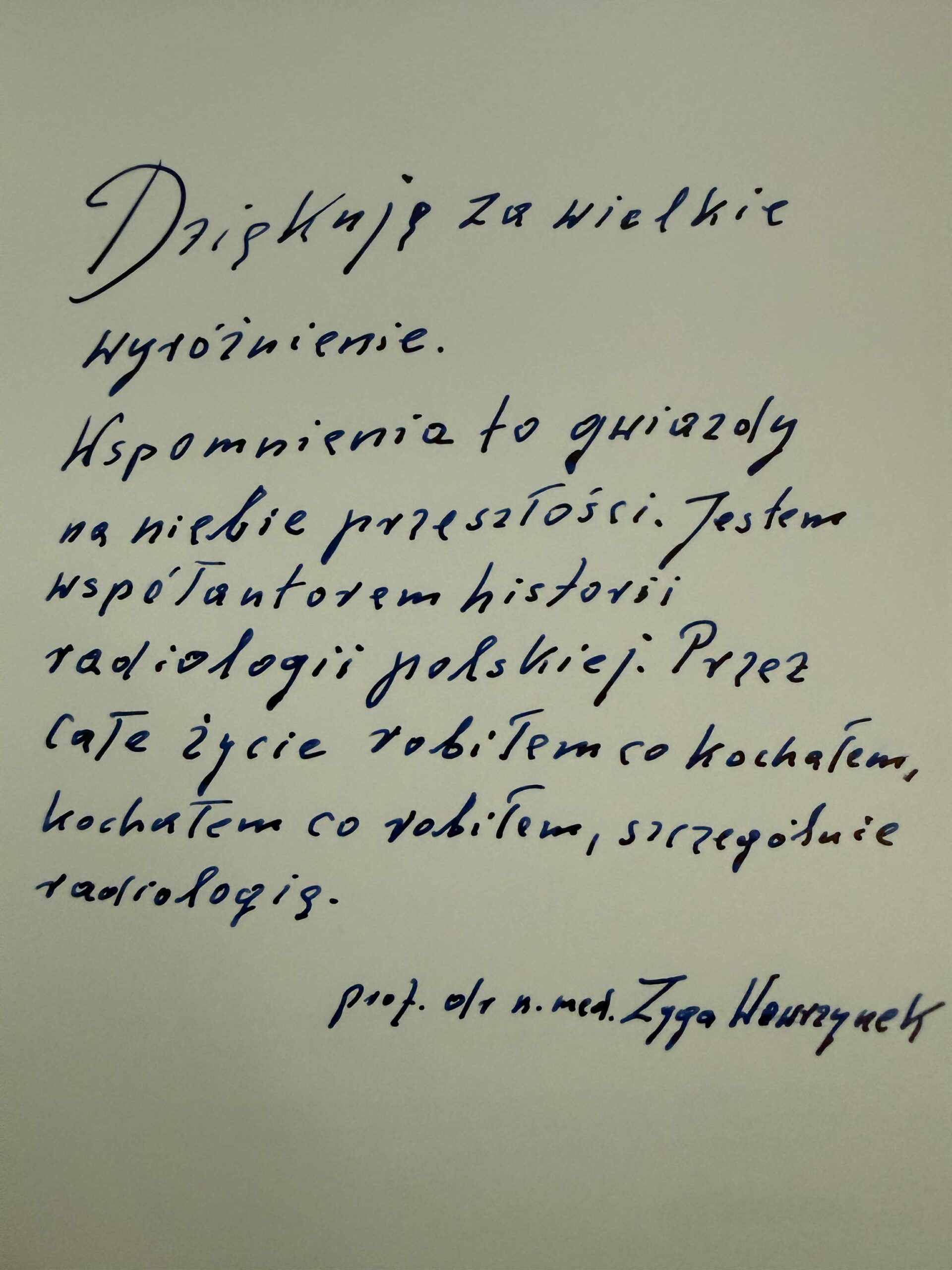Wspólne świętowanie rozpoczęliśmy w nieprzypadkowym terminie. Uroczystość przypadła w przededniu urodzin wybitnej polskiej naukowczyni Marii Skłodowskiej-Curie, podwójnej laureatki Nagrody Nobla z fizyki (1903 r.) i chemii (1911 r.). Uczonej, którą w uznaniu wyjątkowych zasług w pracy naukowej i wkładu w rozwój radiologii i diagnostyki obrazowej, jako pierwszą w historii Polskie Lekarskie Towarzystwo Radiologiczne uhonorowało godnością Członka Honorowego (1931 r.).